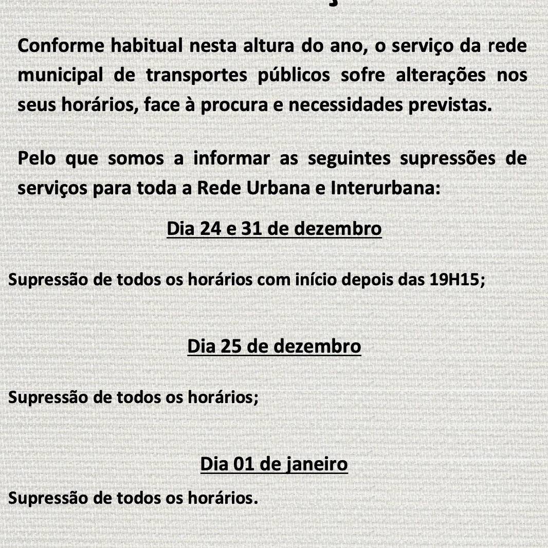 Conforme habitual nesta altura do ano, o serviço da rede municipal de transportes públicos sofre alterações nos seus horários, face à procura e nec...